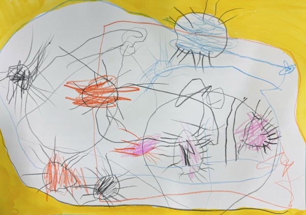 거미를 좋아하는 이안이는 거미줄에 걸린 거미들을 그려 보았습니다.