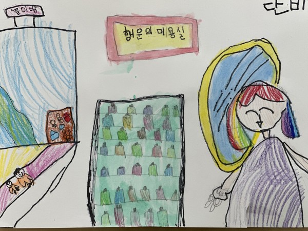 누리나래 구립베라힐즈어린이집(무궁화반) 4 페이지 정보 작성자 수빈T 댓글 0건 조회 5,682회 작성일 24-05-31 09:48 본문 유아 이름: 이최단비(만5세) 원 주소: 서울특별시 은평구 통일로 630 녹번래미안베라힐즈 어린이집(02-356-9987) 작품 설명: 어린이들이 오고 싶어하는 미용실에서 일하는 미용사가 되고 싶어요. 놀이방도 있어요. 미용실 이름은 '행운의 미용실'이에요. 우리 미용실에 오면 행운이 가득해져요. 검색 목록 글쓰기 이전글공립교대어린이집(푸른하늘반) 24.05.31 다음글구립베라힐즈어린이집(무궁화반) 3 24.05.31 댓글목록 댓글목록 등록된 댓글이 없습니다.