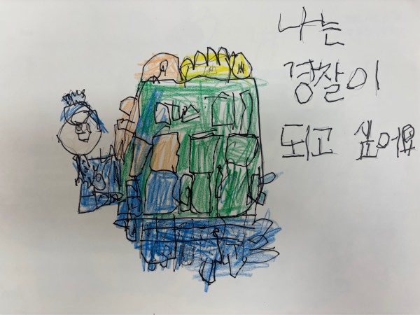 5. 이든 (만 3세, 5살) - 광주광역시 서구 화개1로24번길 9 (062-682-2080), 경찰이 되어 경찰서 앞에서 시민들을 안전하게 지켜주는 모습