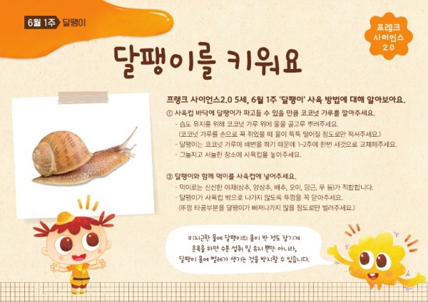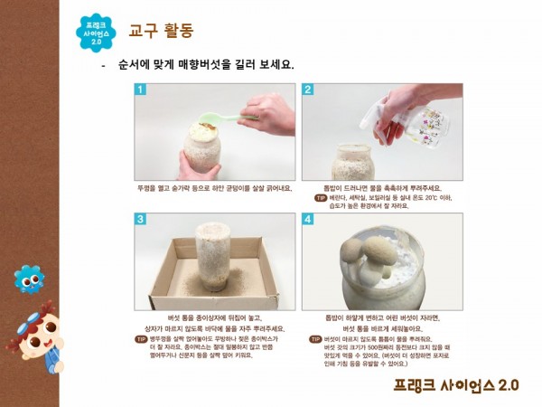 프랭크사이언스2.0 프랭크 사이언스 2.0 생태교구 안내문 (장수풍뎅이, 달팽이, 강낭콩, 매향버섯, 개운죽) 페이지 정보 작성자 아이온 댓글 0건 조회 5,144회 본문 선생님, 안녕하세요.프랭크 사이언스 2.0과 함께해 주셔서 감사드립니다.프랭크 사이언스2.0의 생태교구 중 이슈가 있었던 교구의 안내문을 제공해 드립니다.(발아 방법, 보관 방법,사육 방법 등)내용 확인하시고, 원에서 가정에 보내주실 때는 인사 문구를 수정하여 사용하시기 바랍니다. 첨부파일 2호 1단계 강낭콩 안내문발아방법.pptx (652.9K) 2242회 다운로드 | DATE : 2023-03-22 13:59:37 4호 1단계 달팽이 안내문사육방법.pptx (515.2K) 2336회 다운로드 | DATE : 2023-03-22 13:59:37 8호 생태안내문 개운죽, 매향버섯 보관방법.pptx (488.8K) 2297회 다운로드 | DATE : 2023-03-22 13:59:37 3호 2단계 장수풍뎅이 사육 안내문.pptx (1.9M) 2241회 다운로드 | DATE : 2023-04-28 15:44:00 검색 목록 이전글프랭크 사이언스 2.0 2호 2단계, 4호 3단계 교구 변경 공지 23.06.13 다음글프랭크사이언스2.0 E-Book안내문 공지 22.11.23 댓글목록 댓글 등록 시, 로그인이 필요합니다. 로그인 댓글목록 등록된 댓글이 없습니다.